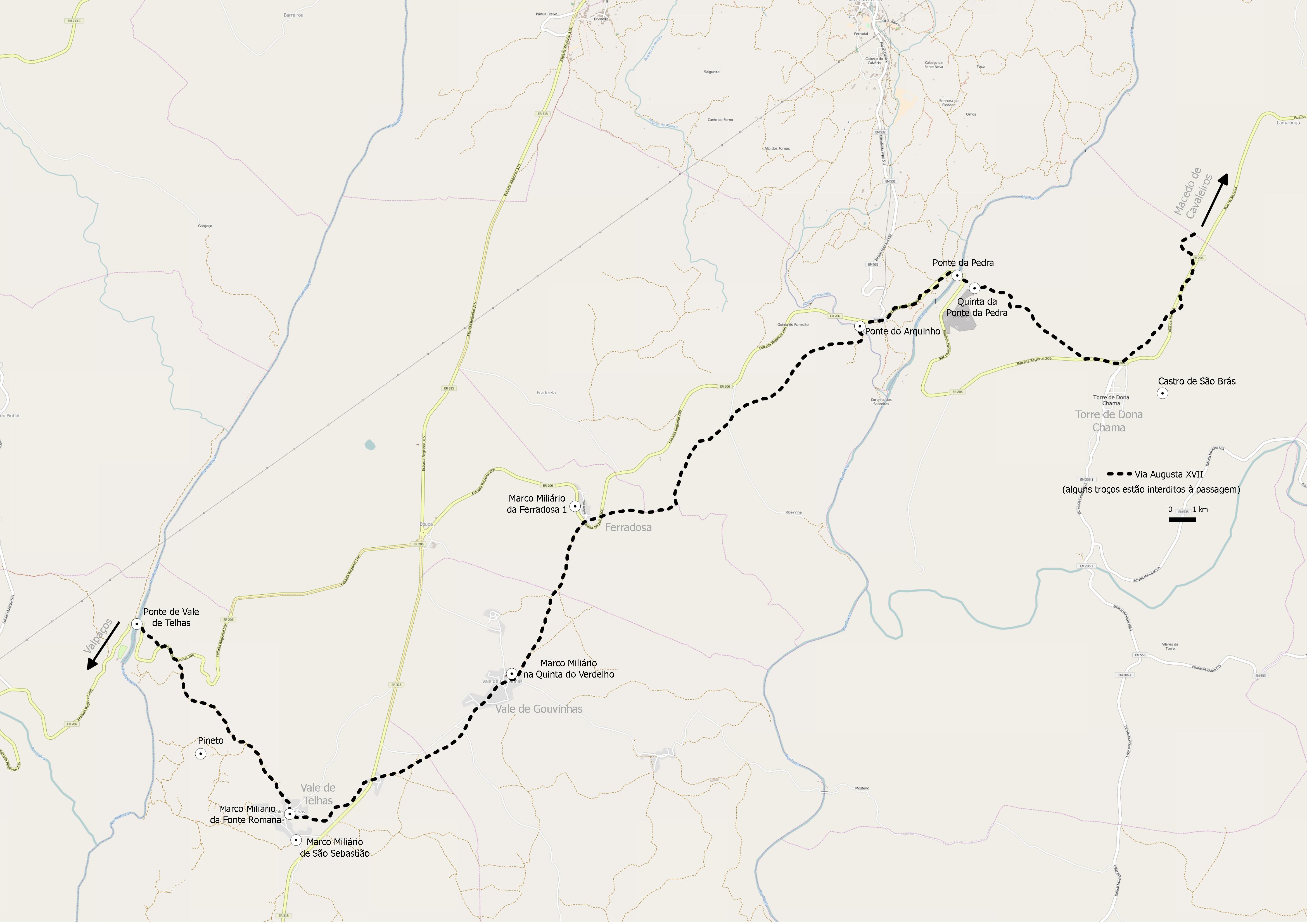 Por esta rota sugere-se ao visitante percorrer o troço da via romana em Mirandela, entre Vale de Telhas e a Torre de D. Chama. Pode ver pontes, marcos miliários e povoados associados que faziam parte deste percurso e da vivência romana, bem como usufruir de uma paisagem distinta.