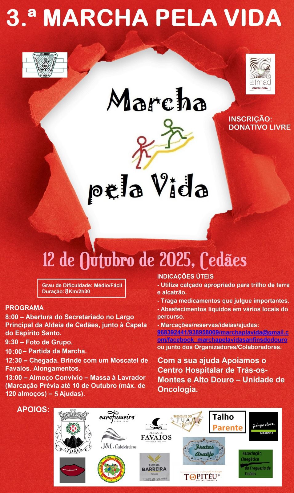 No próximo dia 12 de outubro de 2025, realiza-se a terceira edição da Marcha Pela Vida, em Cedães, com um novo percurso que promete dar a conhecer a beleza e a identidade da Terra Quente Transmontana.
