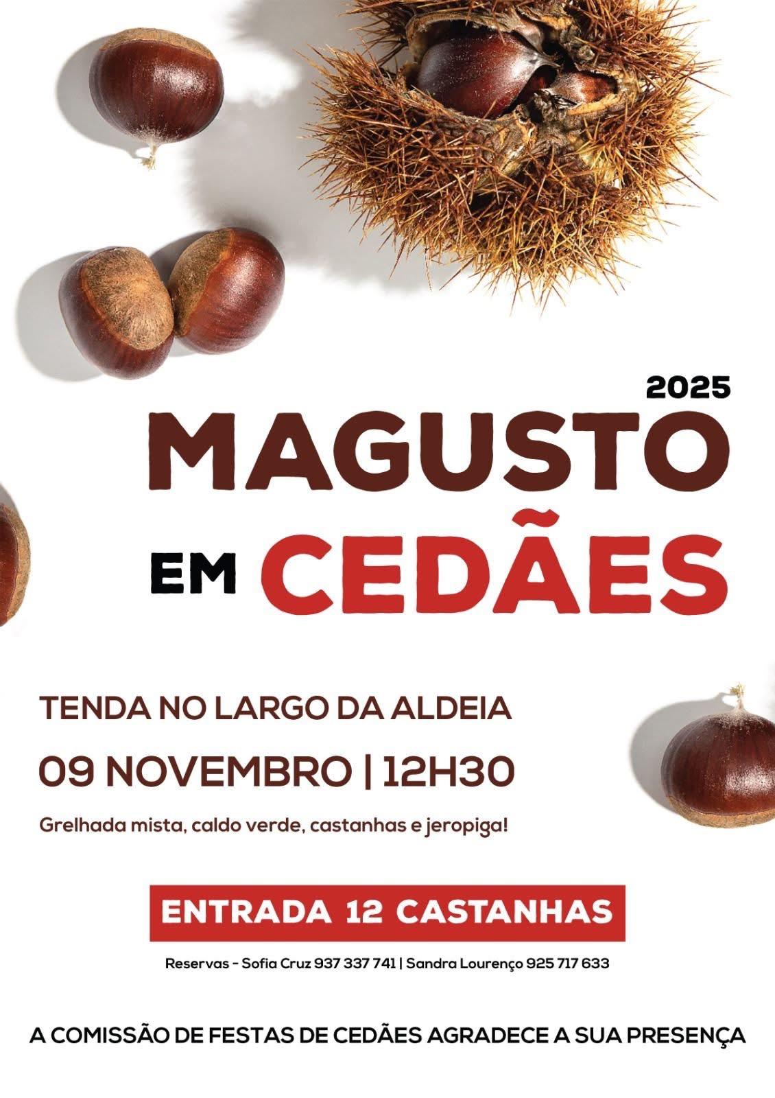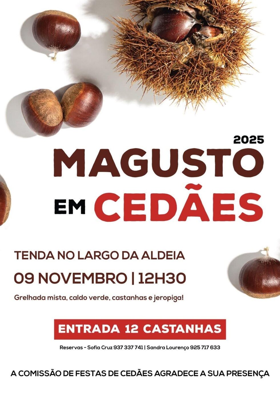 A Comissão de Festas de Cedães organiza um Magusto, no dia 9 de novembro, pelas 12h30, no Largo da aldeia.