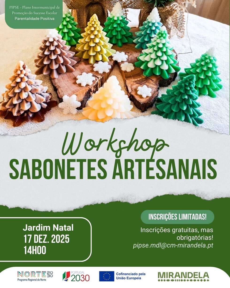 O Município de Mirandela promove um workshop de Sabonetes Artesanais de Glicerina, integrado no PIPSE – Plano Intermunicipal de Promoção do Sucesso Escolar, uma iniciativa que envolve vários municípios e que tem como objetivo reforçar o sucesso educativo, promover igualdade de oportunidades e incentivar aprendizagens significativas através de atividades criativas, pedagógicas e participativas.