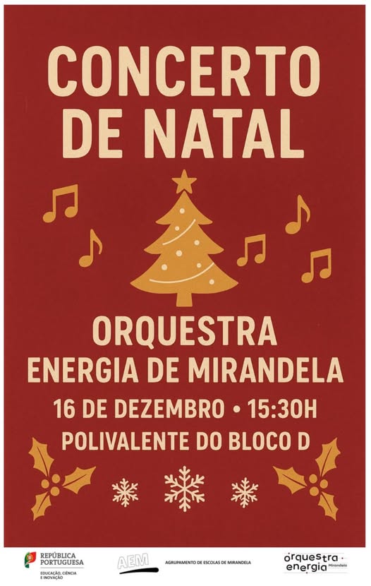 A Orquestra Energia de Mirandela convida toda a comunidade para o Concerto de Natal, que terá lugar no dia 16 de dezembro, às 15h30, no Polivalente do Bloco D da Escola Básica Luciano Cordeiro.