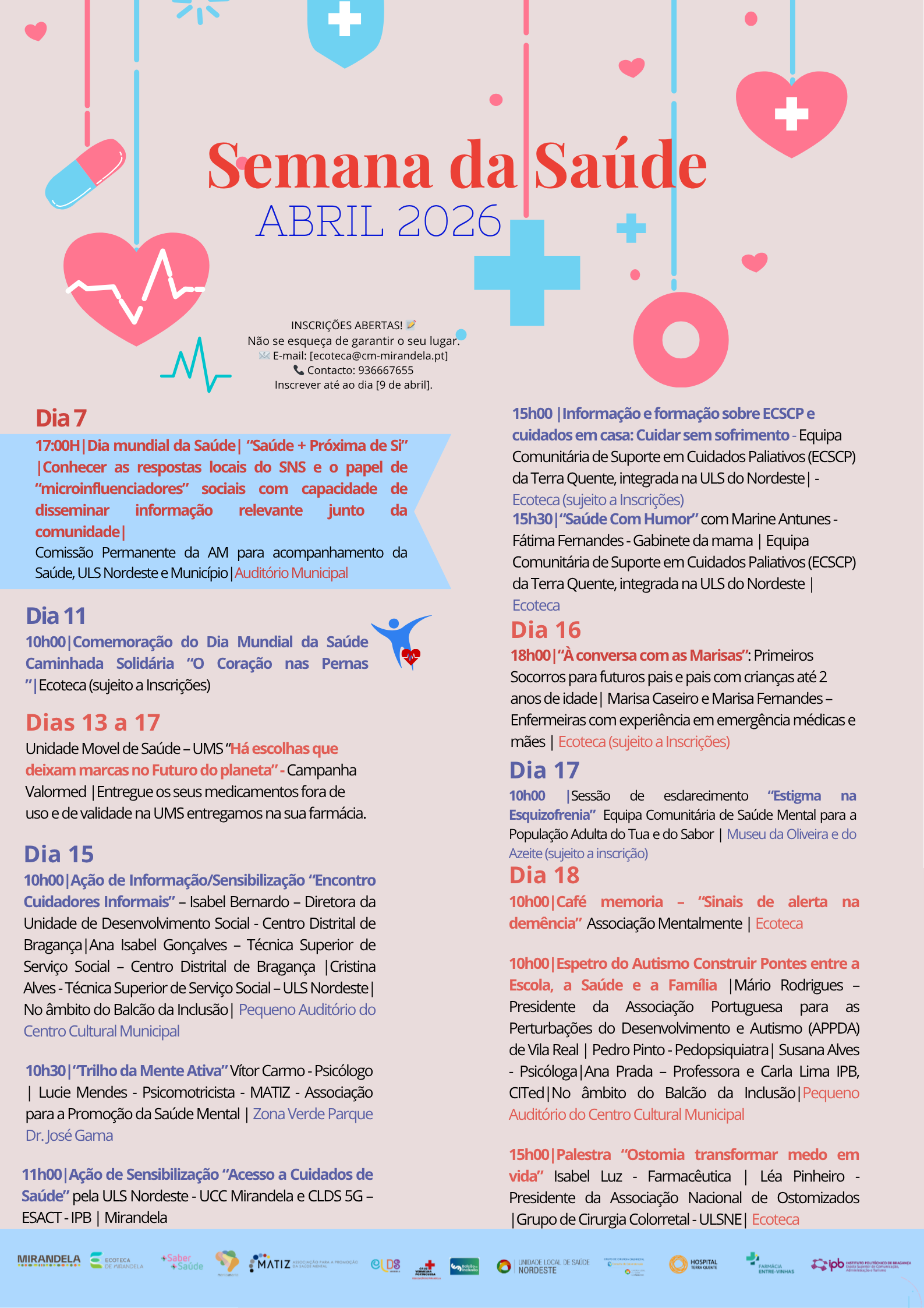 Durante o mês de abril, Mirandela assinala a Semana da Saúde com um conjunto alargado de iniciativas dedicadas à promoção do bem-estar e à sensibilização para diferentes áreas da saúde.
