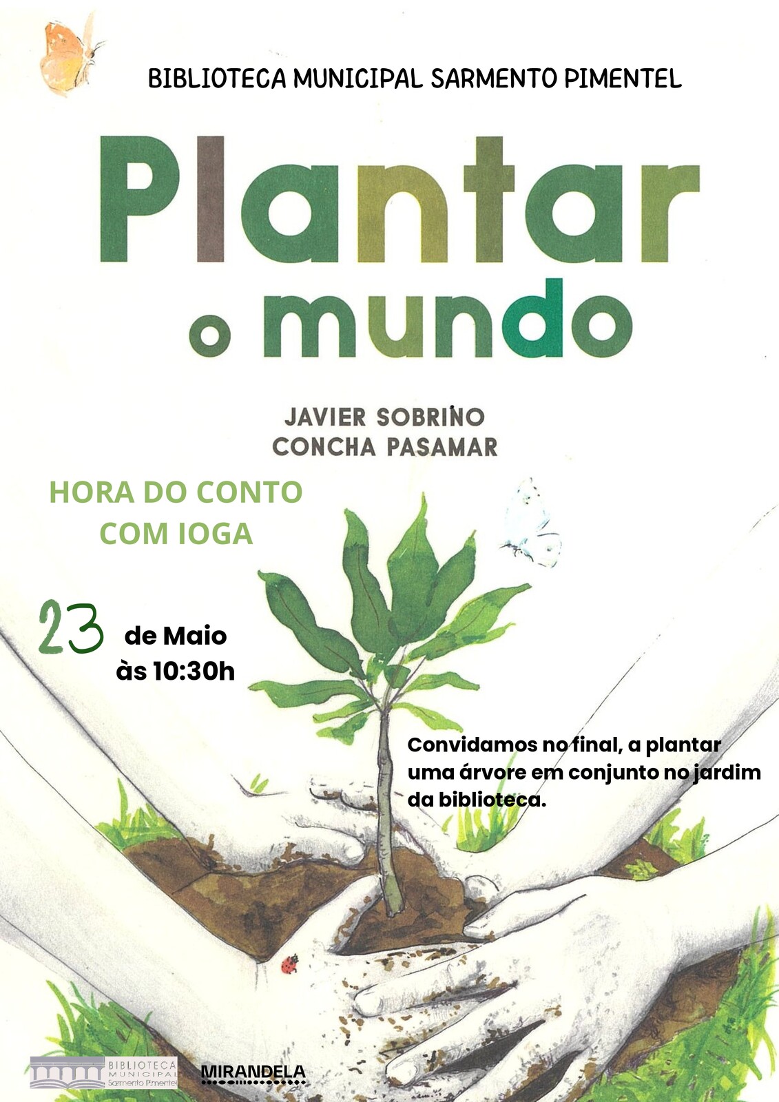 Hora do Conto e Yoga "Plantar o Mundo" de Javier Sobrino e Concha Pasamar - maio 2026 | Biblioteca Municipal Sarmento Pimentel |