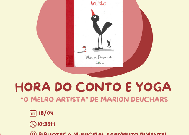Hora do Conto e Yoga “O Melro Artista” de Marion Deuchars - abril 2026 | Biblioteca Municipal Sarmento Pimentel |